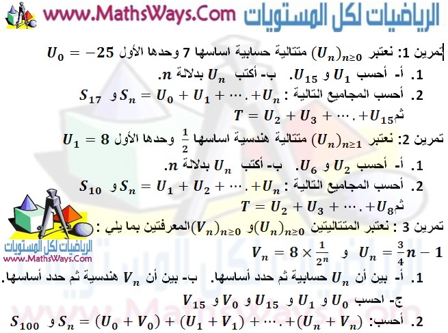 تمارين حول المتتاليات متتالية حسابية متتالية هندسية