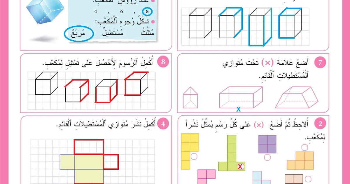تصحيح درس المكعب و متوازي الأضلاع إنشاءات للمستوى الرابع