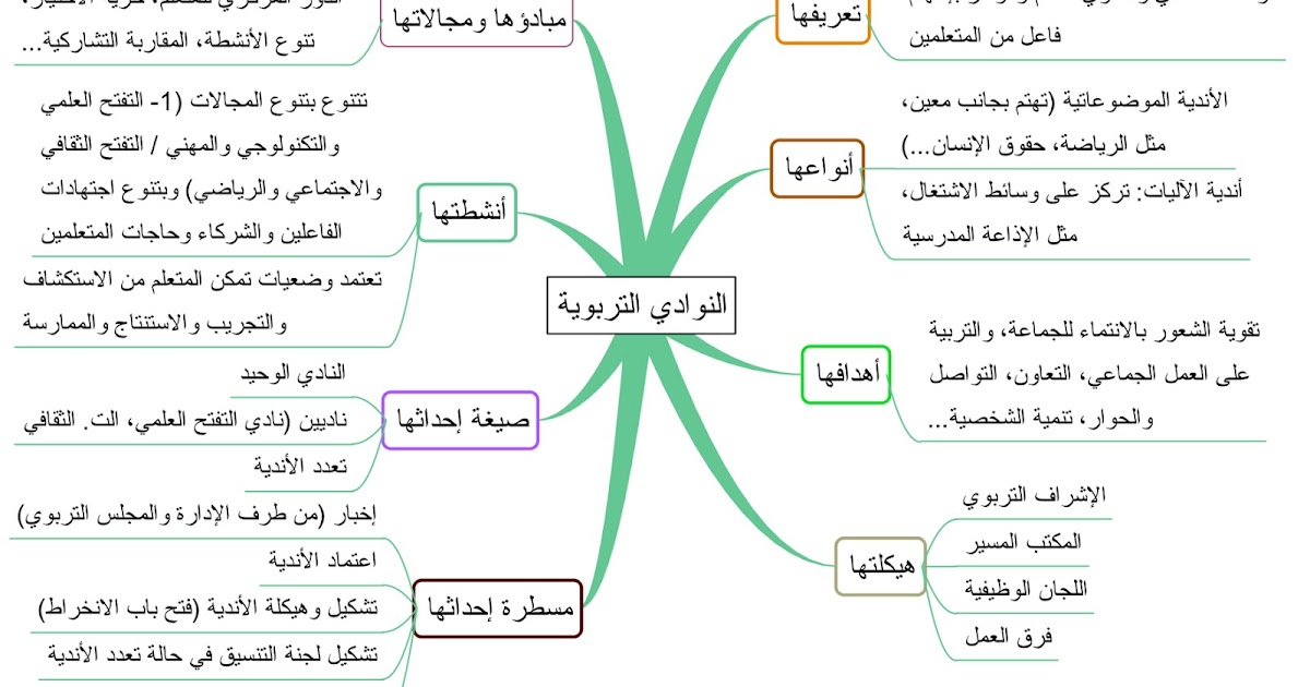 علوم التربية النوادي التربوية ملخص بالخريطة الذهنية منتقى الفوائد
