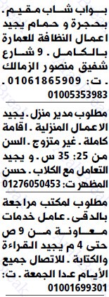 مطلوب عامل نظافة مقيم ـ يجيد التعامل م سكربت توظيف وظائف