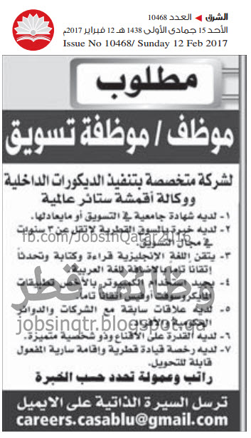 مطلوب موظفة تسويق وظائف اليوموظائف اليوم