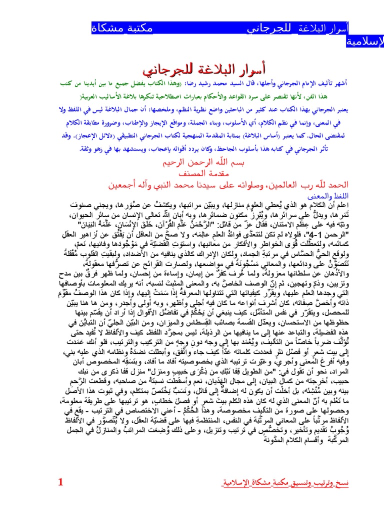 أسرار البلاغة لـ الجرجاني Doc
