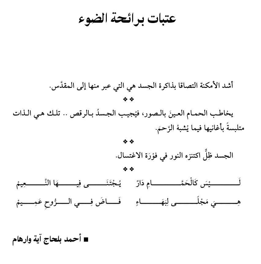 معراج الحروف جماليات الحمامات في الحضارة العربية الإسلامية الفضاء والمتخيل الجزء الأول